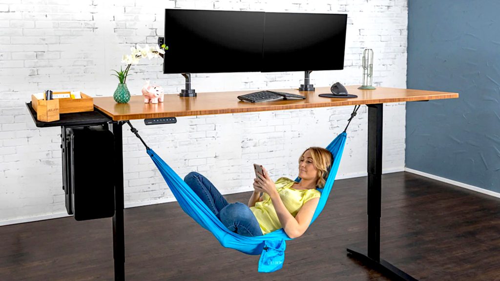 Digging a little deeper, the under-desk hammock feels like an embrace of crunch culture. I could imagine it being used as an upsell during an employment interview. “Everyone gets their own standing desk and it even has a hammock underneath!” Sleep at my desk, huh? Not going to happen, especially when I have a bed just down the hall.