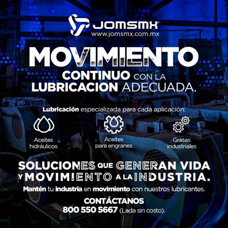 En JOMS de México®, entendemos la importancia de mantener tus equipos en las mejores condiciones posibles. Nuestros lubricantes especializados están diseñados para generar vida y movimiento en tu industria, asegurando que tus operaciones nunca se detengan. Te invitamos a contactarnos para conocer más sobre cómo podemos ayudarte a optimizar tus procesos de mantenimiento y operación. ¡Mantén tu industria en movimiento con JOMS de México! Contáctanos al 800 550 5667 (Lada sin costo).