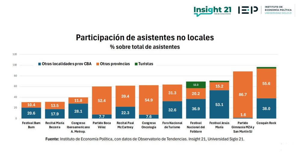 Los eventos culturales, deportivos y profesionales desarrollados en Córdoba en la temporada de verano 2025 generaron más de 300.000 millones de pesos, según el estudio presentado por la Agencia Córdoba Turismo, junto al Córdoba Clúster Congresos y Espectáculos, al Instituto Insight 21 (Universidad Siglo 21) y el Instituto de Cultura Contemporánea.