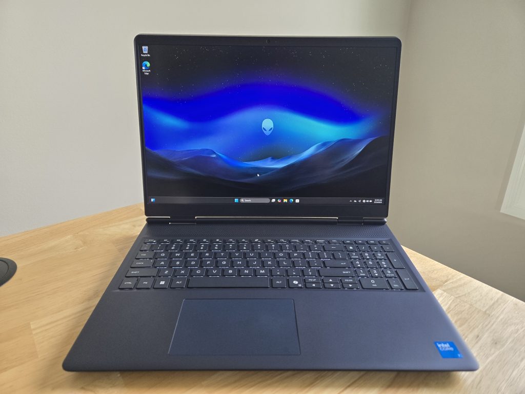 It also has a backlit keyboard, which is perfect if you’re into late night gaming (makes it easier to see the keys), a 16-inch 2560×1600 display, 32GB of RAM, and RTX 5060 graphics. The build quality is sturdy, too. It’s got an anodized aluminum lid and the hinge is easy to open with a single hand.