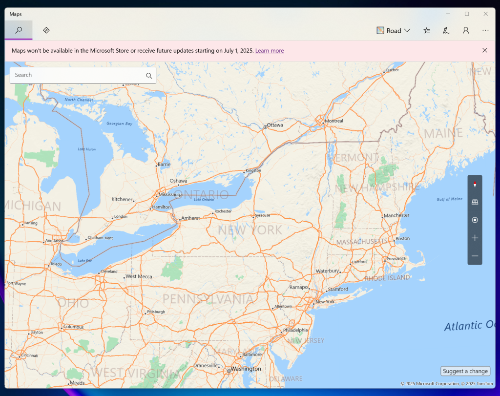 Maps, whose data is credited to both TomTom and Microsoft itself, also previously agreed to change the “Gulf of Mexico” to the “Gulf of America.” So if that riles you up, you’ll be glad to see Maps go.