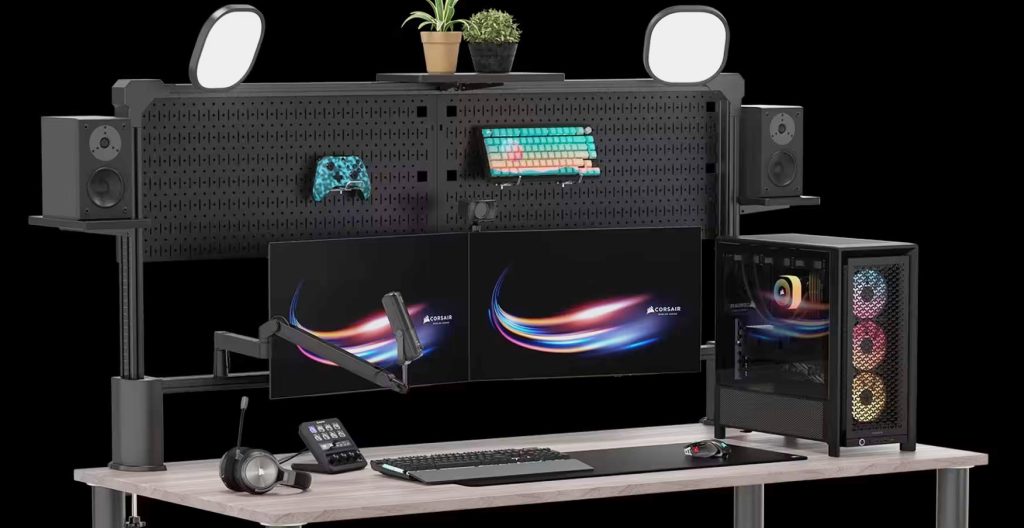Hello, fellow workstation addicts. I see y’all over on the /r/battlestations subreddit, lovingly tweaking your monitor angles and searching for the perfect succulent to add a splash of green. Come check out the newest addition to Corsair’s growing desk offerings: a functional add-on peg board to hold controllers, lights, Gundam models, and more.