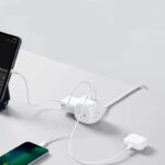The beautiful thing about this charging station is how compact it is. Compared to the bulky power strip designs we’re all familiar with, this one from Anker is flat, slim, and shaped like a square. The extension cord is also thin and flat, reaching about 5 feet long, and the plug itself is also flat, so it can be fitted behind furniture if needed.