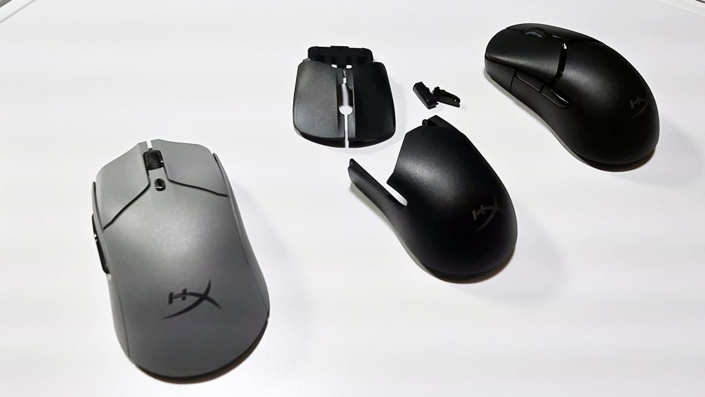 They don’t look all that dissimilar to previous HyperX gaming mice, except that they have interchangeable magnetic chassis and swappable buttons. These can be customized from the get-go by swapping out parts, and each one comes with a pair of shells, button covers, and side buttons to do just that. But apart from those accessories, there aren’t a lot of ready-made accessories available to purchase.