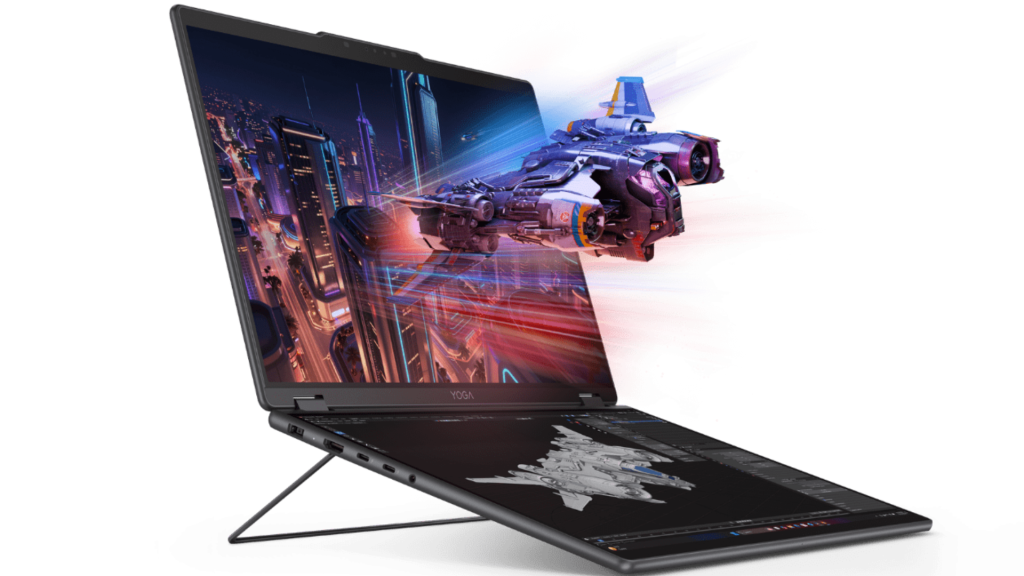 Check out the Yoga Book Pro 3D (the lead image above), which uses a lenticular glasses-free 3D display for its primary screen and a full OLED display on the keyboard deck (well, the spot on a laptop that would normally be a keyboard) to give you a dual-screen layout. I really like its creator-focused vibes, accented by the sleek but functional kickstand that puts the bottom screen at an ideal angle for using a stylus to draw.