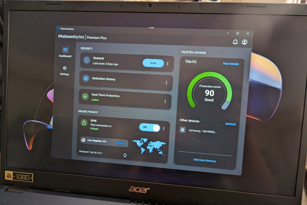 Along the right side is a rating for your PC’s protection level—Malwarebyte’s assessment of how close you are to utilizing the app fully. You can also check on other devices associated with your account.