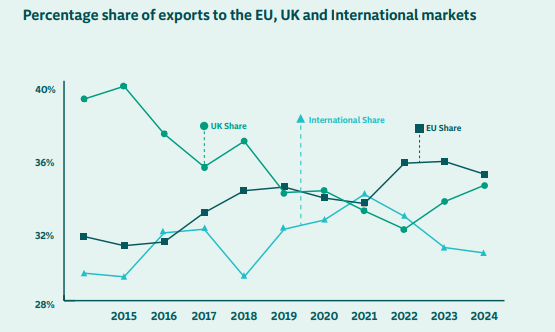 Ireland’s food, drink, and horticulture exports reached a record €17bn ($17.5bn) in 2024, marking a 5% increase from the previous year.