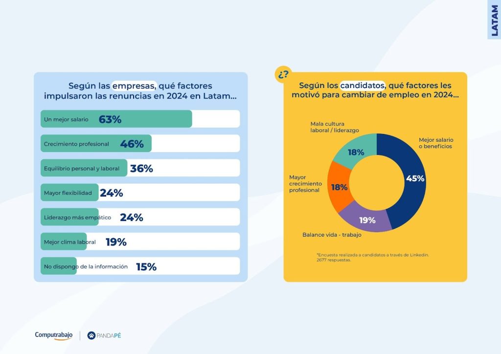 Para Ivonne López, Brand & Communications de Pandapé, “el llamado éxodo de final de año puede ser una cuestión estacional en un momento crítico, pero también representa una señal de cambio más profunda en las expectativas laborales, por lo que es fundamental entender estos comportamientos para crear estrategias orientadas a la fidelización y la sostenibilidad organizacional en el nuevo año. Las empresas que invierten en su gente logran más que reducir la rotación, fortalecen su posición como empleadores preferidos”. ¿Por qué renuncian los mexicanos? Los resultados del estudio “Market Research 2025”, elaborado por Pandapé, arroja datos contundentes sobre las principales razones detrás de las renuncias en el país. En primer lugar, los mexicanos buscan salarios más competitivos que reflejen el valor de su trabajo, pero también, en el top de razones, se encuentra que priorizan oportunidades de desarrollo profesional que les permitan avanzar en sus carreras y condiciones laborales que respeten su bienestar personal. El análisis revela que en México y la región, 63% de las renuncias se relacionan con la búsqueda de mejores ingresos, mientras que 46% ocurre por la falta de posibilidades de crecimiento interno. Adicionalmente, 36% de los colaboradores menciona la necesidad de un balance entre vida laboral y personal como un factor determinante. Estos datos confirman que las expectativas van más allá de lo económico, incorporando un enfoque integral en su calidad de vida. |
