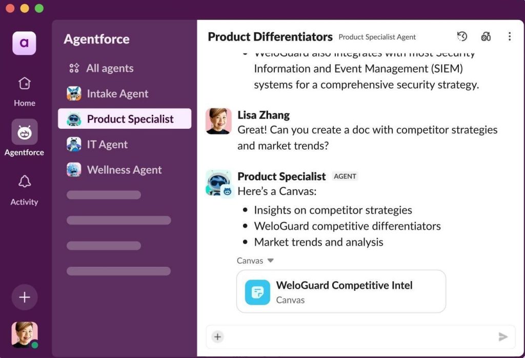 Agents are tailored to a variety of use cases; deal assistance, IT help, onboarding, and marketing strategy are some examples Slack detailed. As well as pre-built agents, customers will be able to host their own customized agents in the Agentforce hub.