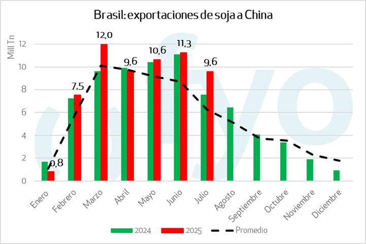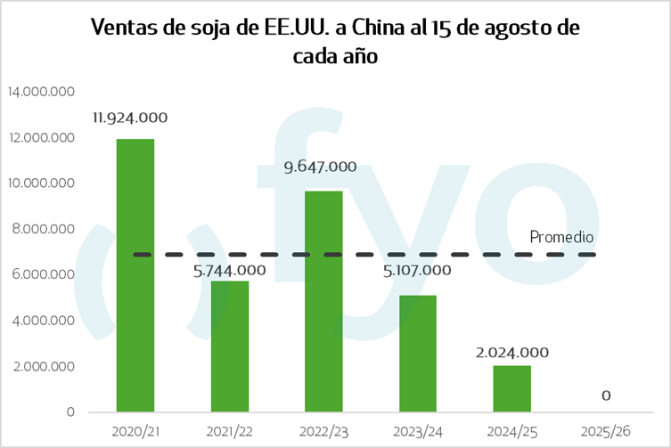 Al llegar a mediados de agosto, el principal comprador mundial aún no registra compras de poroto estadounidense de la campaña 2025/26, cuando el año pasado ya había anotado unas dps millones de toneladas, y el promedio de los últimos cinco años se ubica más cerca de las siete millones.