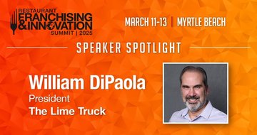 William, DiPaola, president of The Lime Truck, shares a look at his career, his achievements and industry trends ahead of his appearance at Restaurant Franchising & Innovation Summit 2025.William, DiPaola, president of The Lime Truck, shares a look at his career, his achievements and industry trends ahead of his appearance at Restaurant Franchising & Innovation Summit 2025. Read More