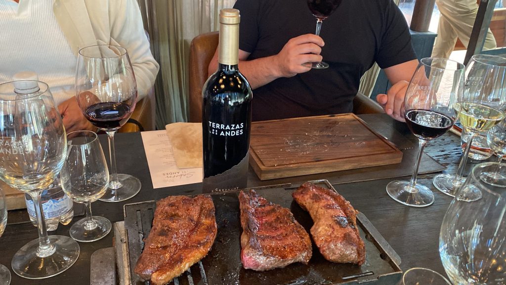El menú fue diseñado para armonizar con las características distintivas de cada etiqueta. El Grand Chardonnay 2023 abrió el maridaje con una selección de quesos. Posteriormente, el Grand Malbec 2022 acompañó una empanada de carne braseada, y el Grand Cabernet Sauvignon 2022 fue el compañero ideal para un bife de picaña con ensalada de estación. El postre, un crumble de manzanas asadas, fue coronado por el Petit Manseng 2021.