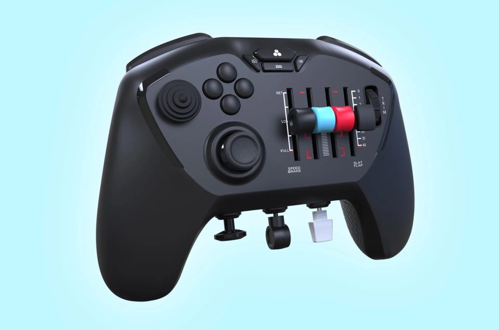 It connects via USB-C or wireless dongle, and it works with Microsoft Flight Simulator and more. It also comes with a hard case and interchangeable control buttons.