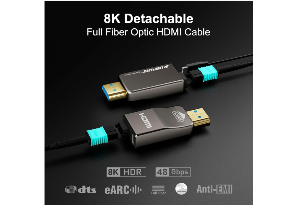 But fiber optic cables don’t suffer from the same problems. Ruipro’s cable can be bought in lengths of 3 feet all the way to a whopping 990 feet. An HDMI cable!
