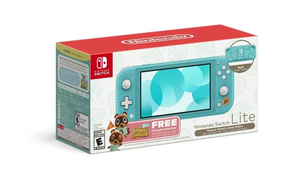 The Nintendo Switch Lite in this bundle is the Timmy & Tommy’s Aloha Edition—a light blue color with a leaf pattern on the back. Plus, the game itself is about $60 on its own, making this bundle a fantastic value.