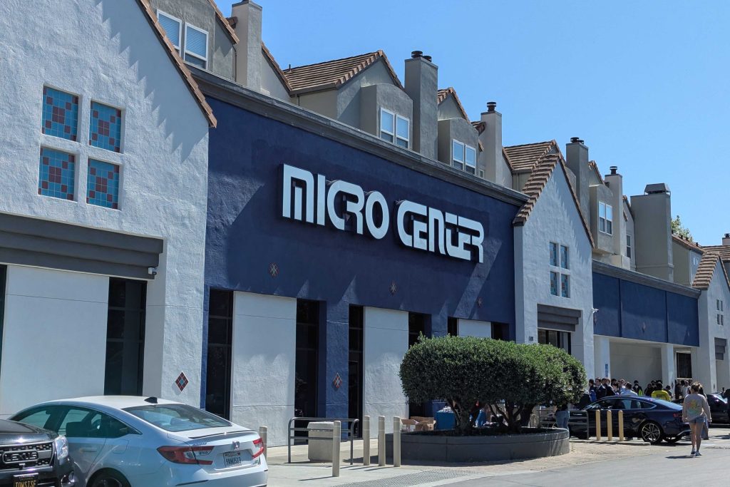 As you’ll see in the video on our YouTube channel, the store is full of bright polished floors, displays backlit with glowing colored lights, and sharp employees. It’s exactly the right feel to draw in tech enthusiasts, especially after Micro Center’s long absence from the San Francisco Bay Area (13 years!). Many who lined up to visit the store with no intent to buy. Rather, as more than one person tells Adam during their interviews, they showed up for the vibes.